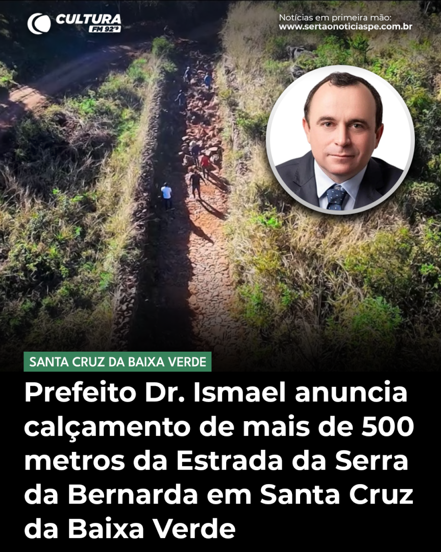 O prefeito de Santa Cruz da Baixa Verde, Dr. Ismael @drismael10, anunciou o início da obra de calçamento em pedra bruta da Estrada da Serra da Bernarda, um investimento que promete transformar a mobilidade e a qualidade de vida de moradores da localidade.