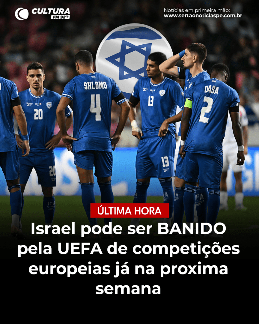 O futebol europeu pode enfrentar uma decisão histórica na próxima semana. A UEFA deve votar a proposta de exclusão de Israel de suas competições, após solicitação feita pela Organização das Nações Unidas (ONU) em razão das ações do país nos territórios palestinos.